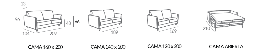 MILÁN, un sofá cama con tres tamaños a elegir. Brazos estrechos y altos. Cómodo, con estilo y moderno.